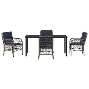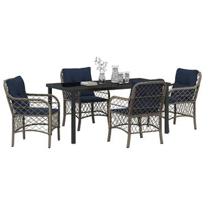 Trädgårdsmöbelset med kudde 5 pcs Grå och svart Rotting