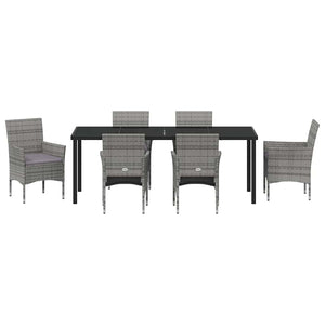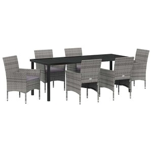 Trädgårdsmöbelset med kudde 7 pcs Grå konstrotting