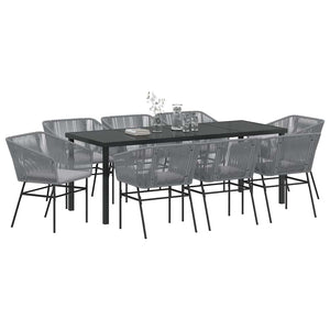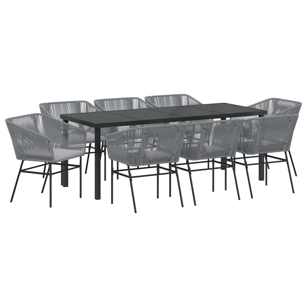 Trädgårdsmöbelset med kudde 9 pcs Grå Pulverlackerat stål