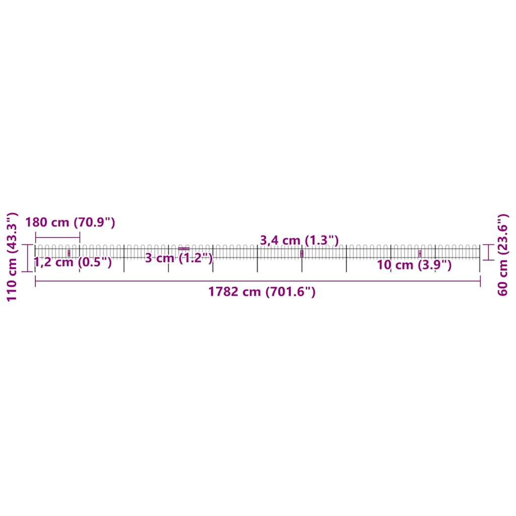 Trädgårdsstaket med bågeöverdel stål 1781,5x60 cm svart