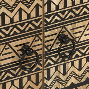 - Massivt mangoträ: Massivt mangoträ är ett starkt, tropiskt träslag som ger robusta möbler. Dess vackra träfibrer gör varje möbel något unik. Skåpet är tillverkat av massivt mangoträ och är hållbart och stabilt.