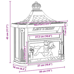 Väggmonterad Brevlåda Brons 40,5 x 16 x 45 cm Gjutet Aluminium