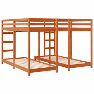 Trippla våningssängram Vaxbrun 200 x 200 cm Massiv furu