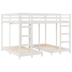 Trippla våningssängram Vit 160 x 200 cm Massiv furu